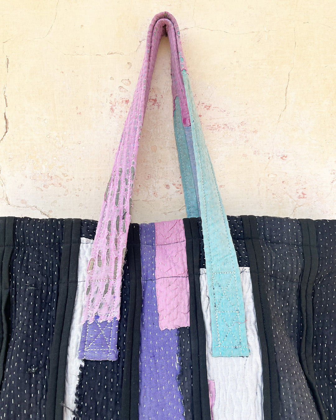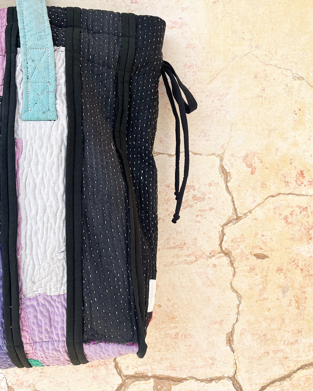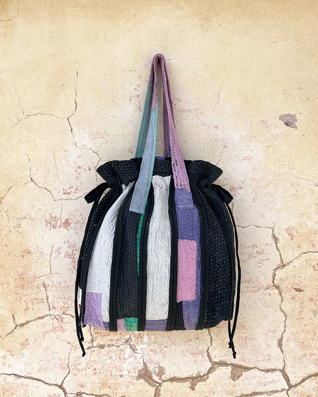 Kantha quilts are crafted from repurposed saris and fabrics and feature repairs, darning, and patchwork. These unique details not only add character but ensure durable, one-of-a-kind garments with a rich up-cycling heritage. We embrace the distressed patches alongside the intricate stitch work in the most unlikely colours.