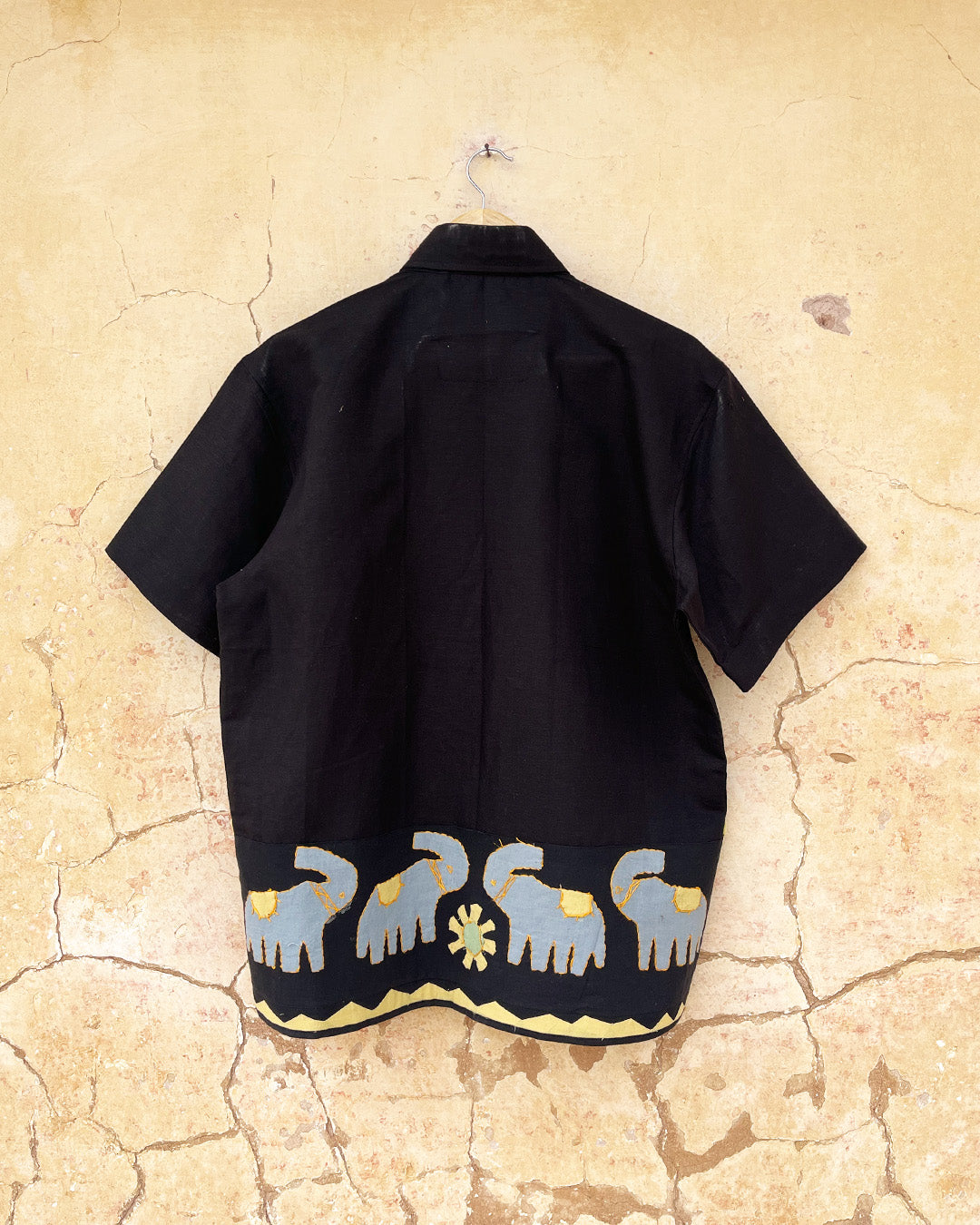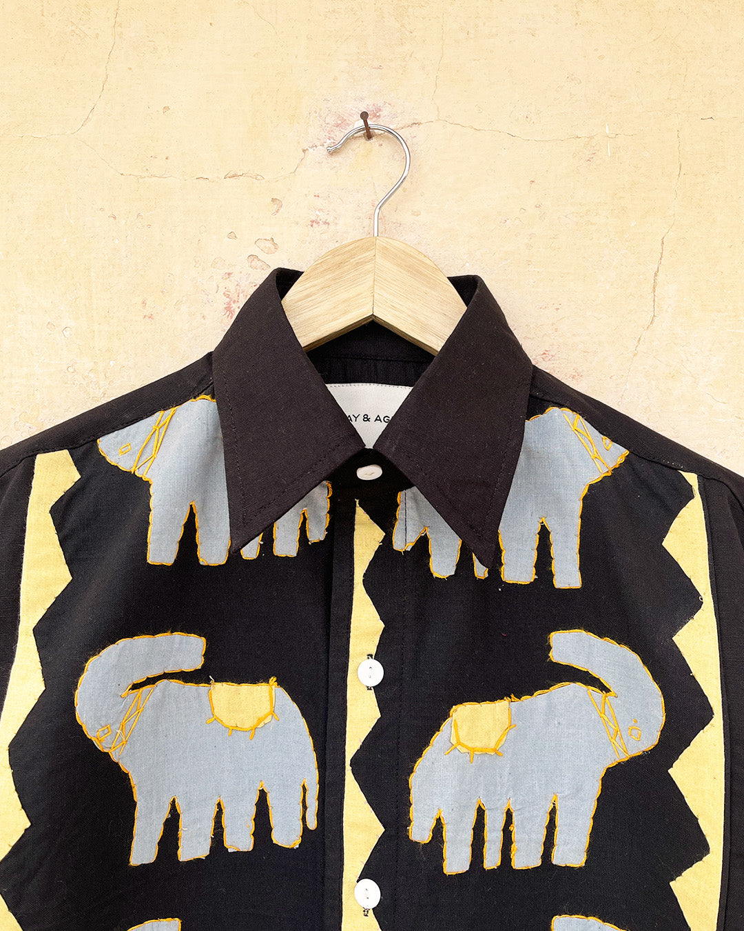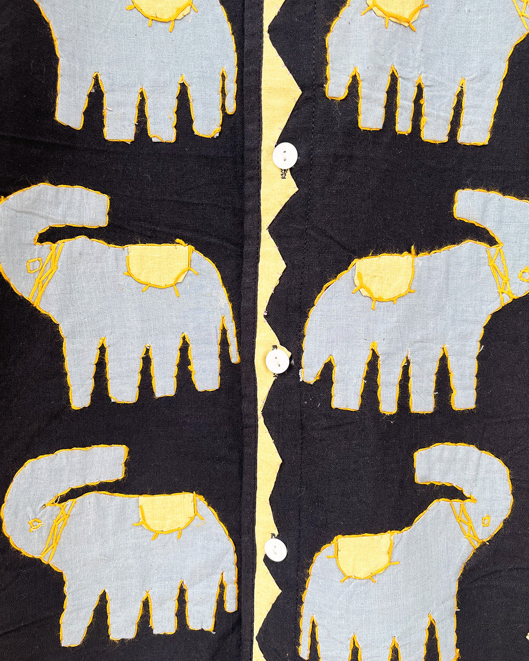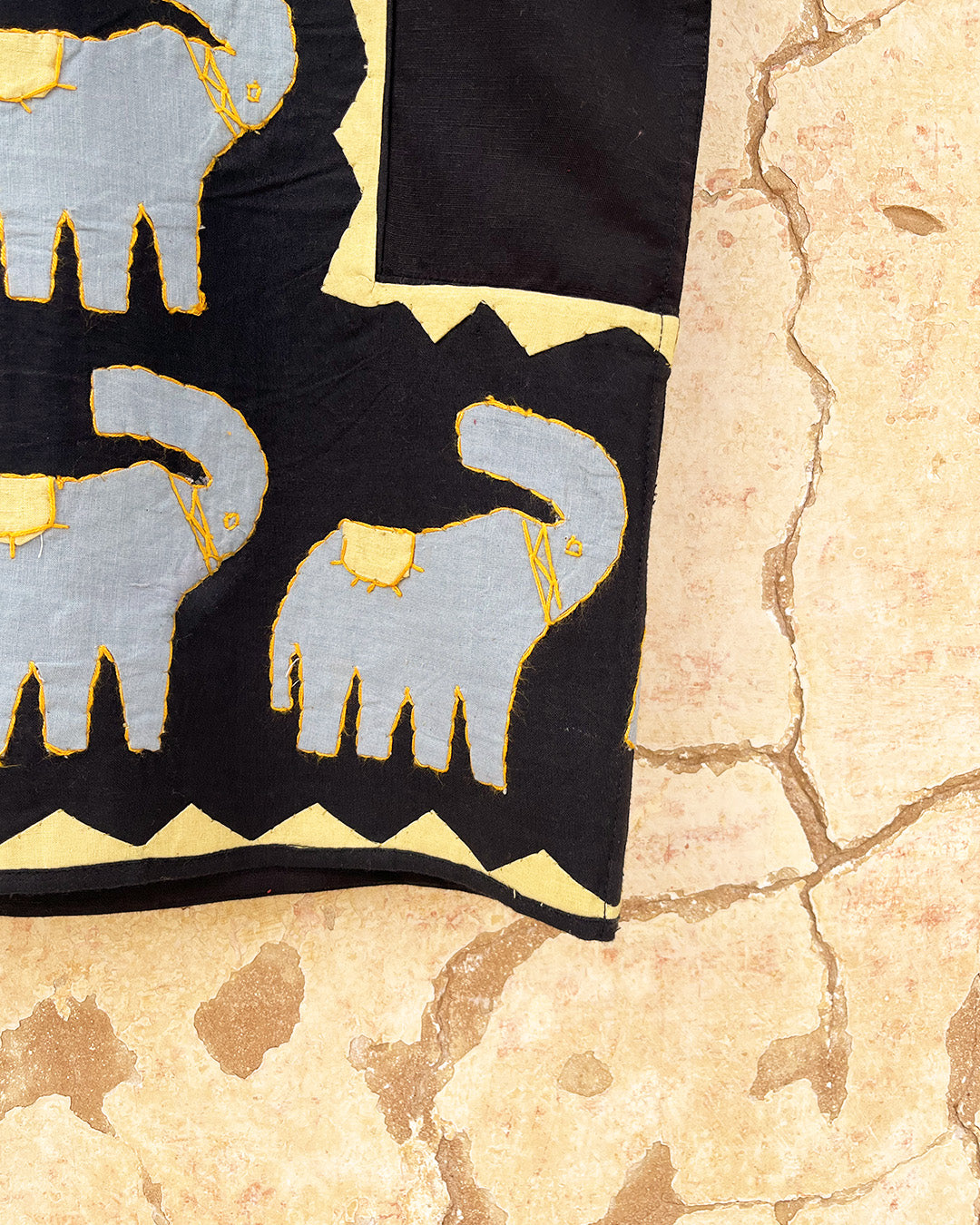 Garments of the Appliqué Collection are made from one-of-a kind vintage appliquéd and hand embroidered bedspreads from Rajasthan. They feature repurposed fabric in smaller motifs that are appliquéd across the surface of the bedspread.