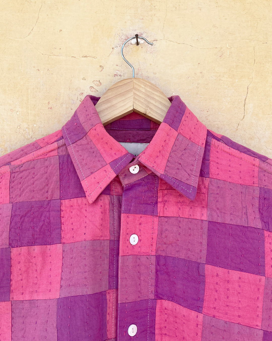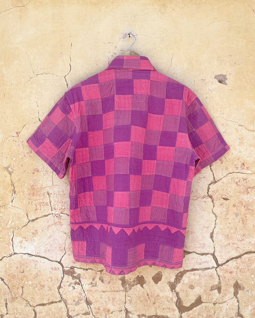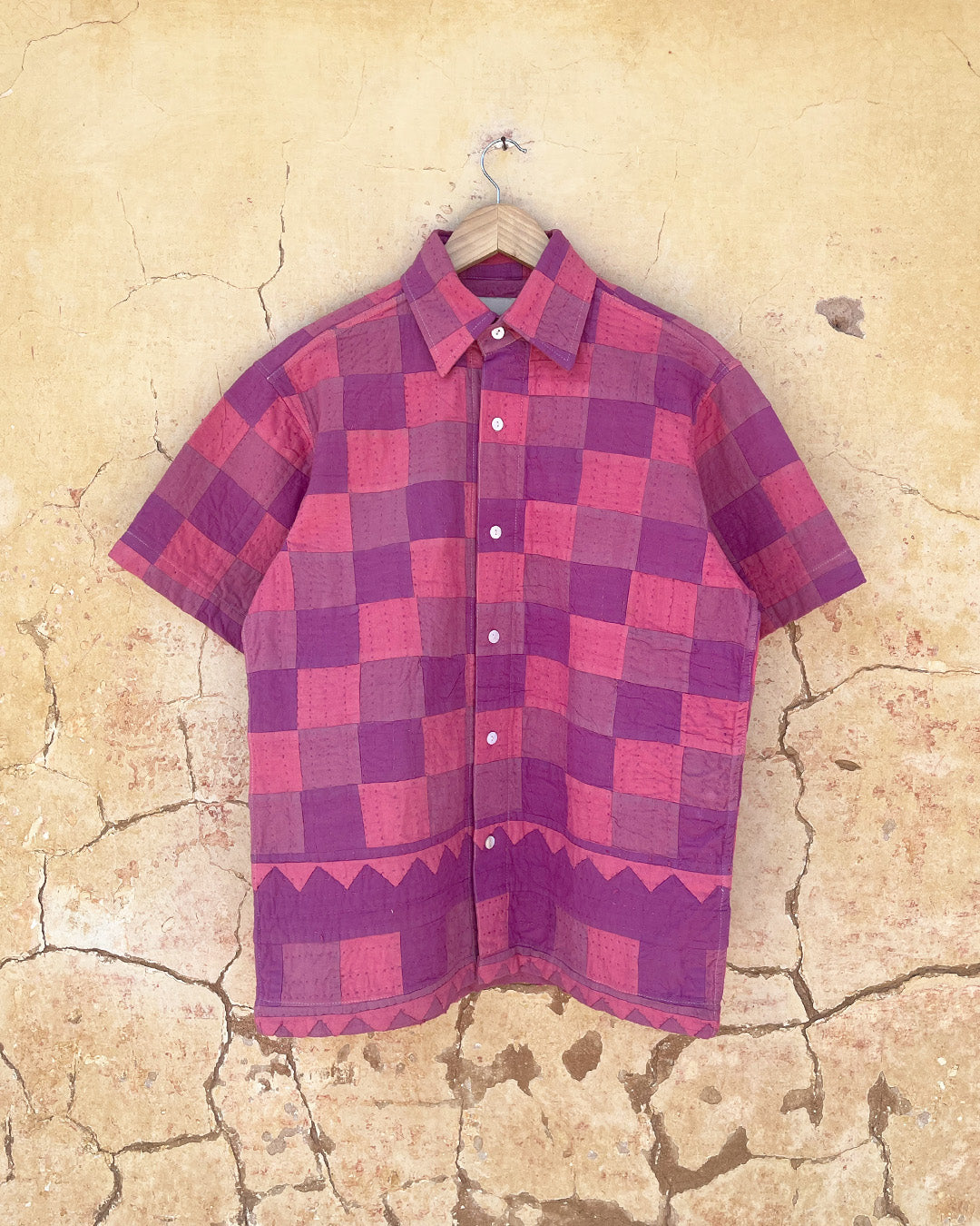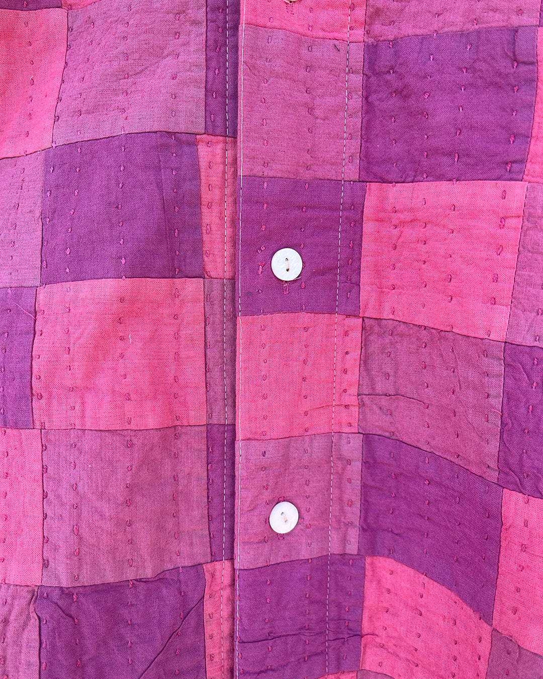 This garment has been made from patched cotton fabrics with hand embroidered details in a myriad of colours. The unique details not only add character but ensure durable, one-of-a-kind garments with a rich up-cycling heritage. We embrace the irregularities alongside the intricate stitch work in the most unlikely colours.