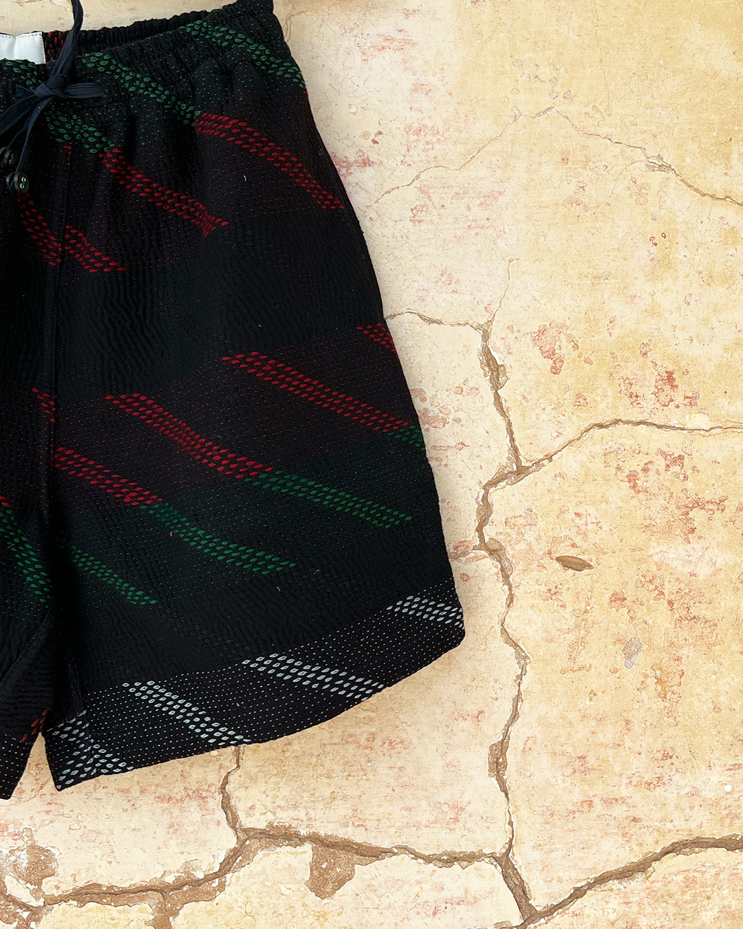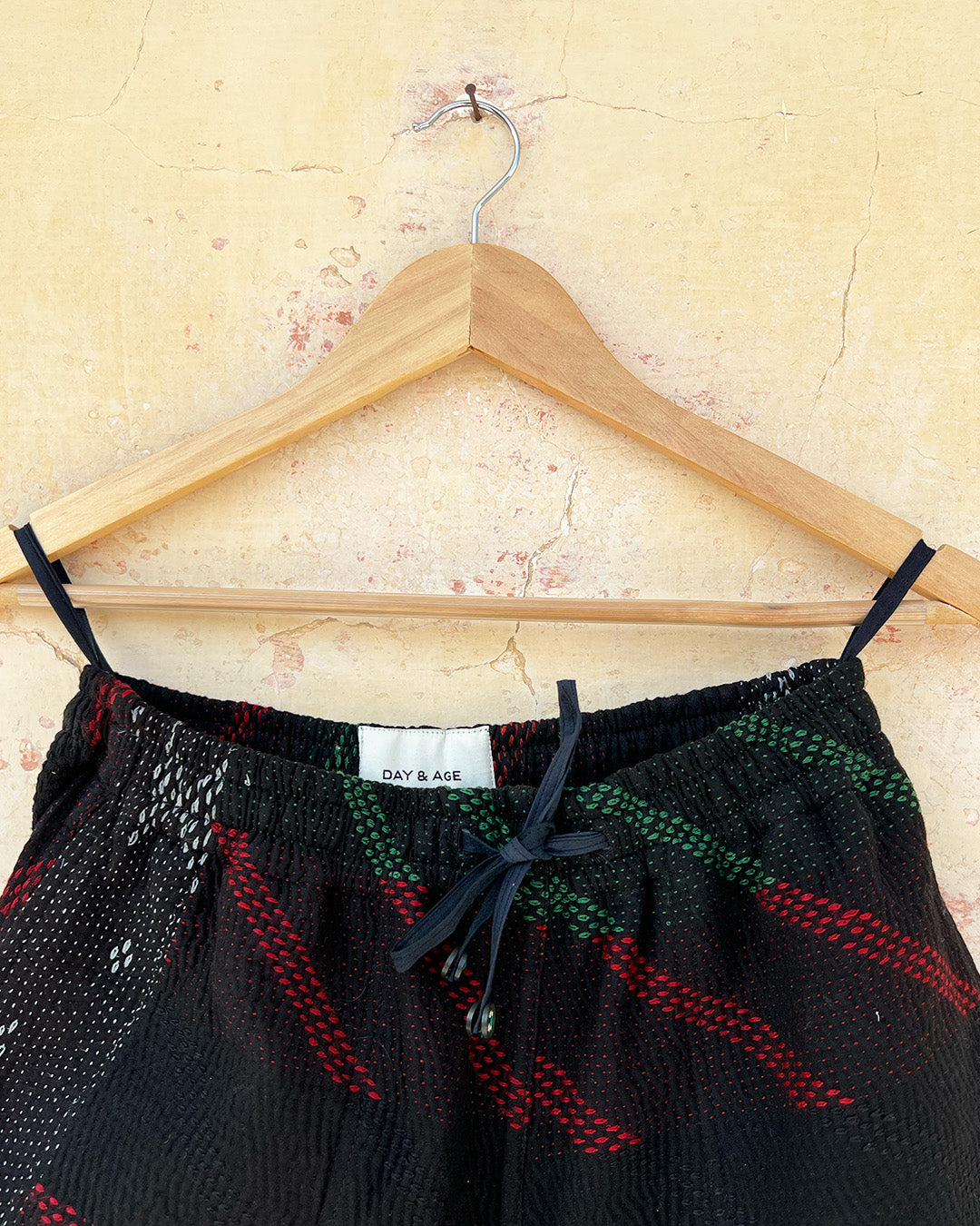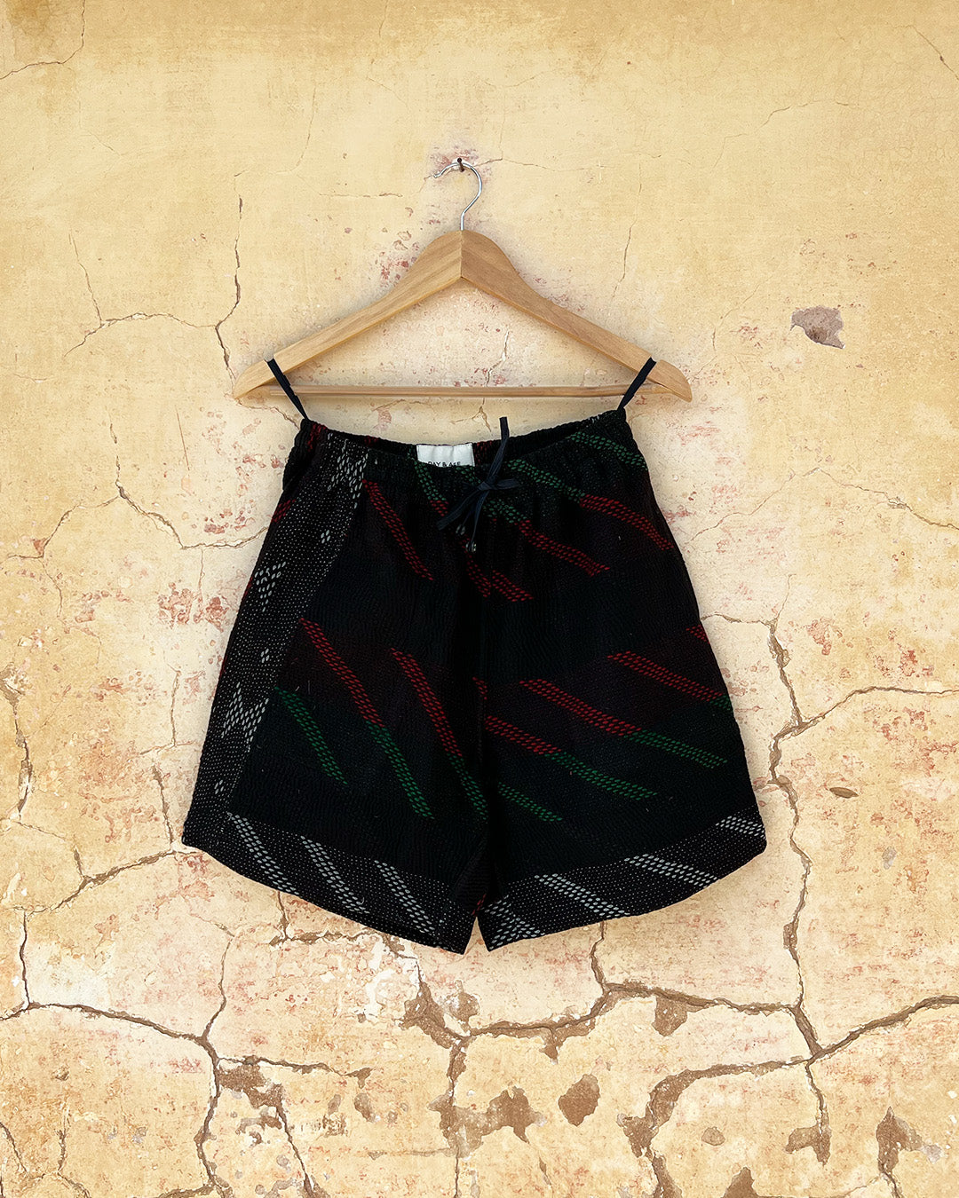 Kantha quilts are crafted from repurposed saris and fabrics and feature repairs, darning, and patchwork. These unique details not only add character but ensure durable, one-of-a-kind garments with a rich up-cycling heritage. We embrace the distressed patches alongside the intricate stitch work in the most unlikely colours.