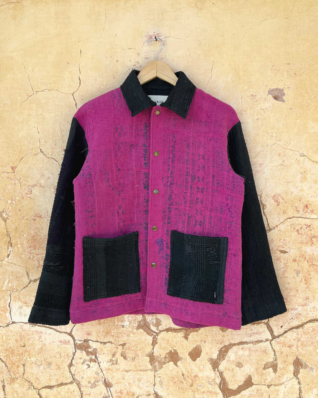 Kantha quilts are crafted from repurposed saris and fabrics and feature repairs, darning, and patchwork. These unique details not only add character but ensure durable, one-of-a-kind garments with a rich up-cycling heritage. We embrace the distressed patches alongside the intricate stitch work in the most unlikely colours.