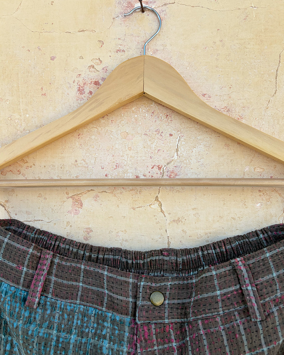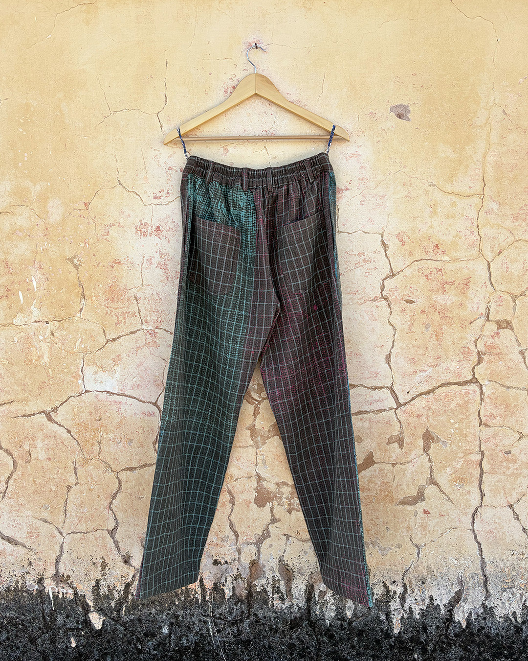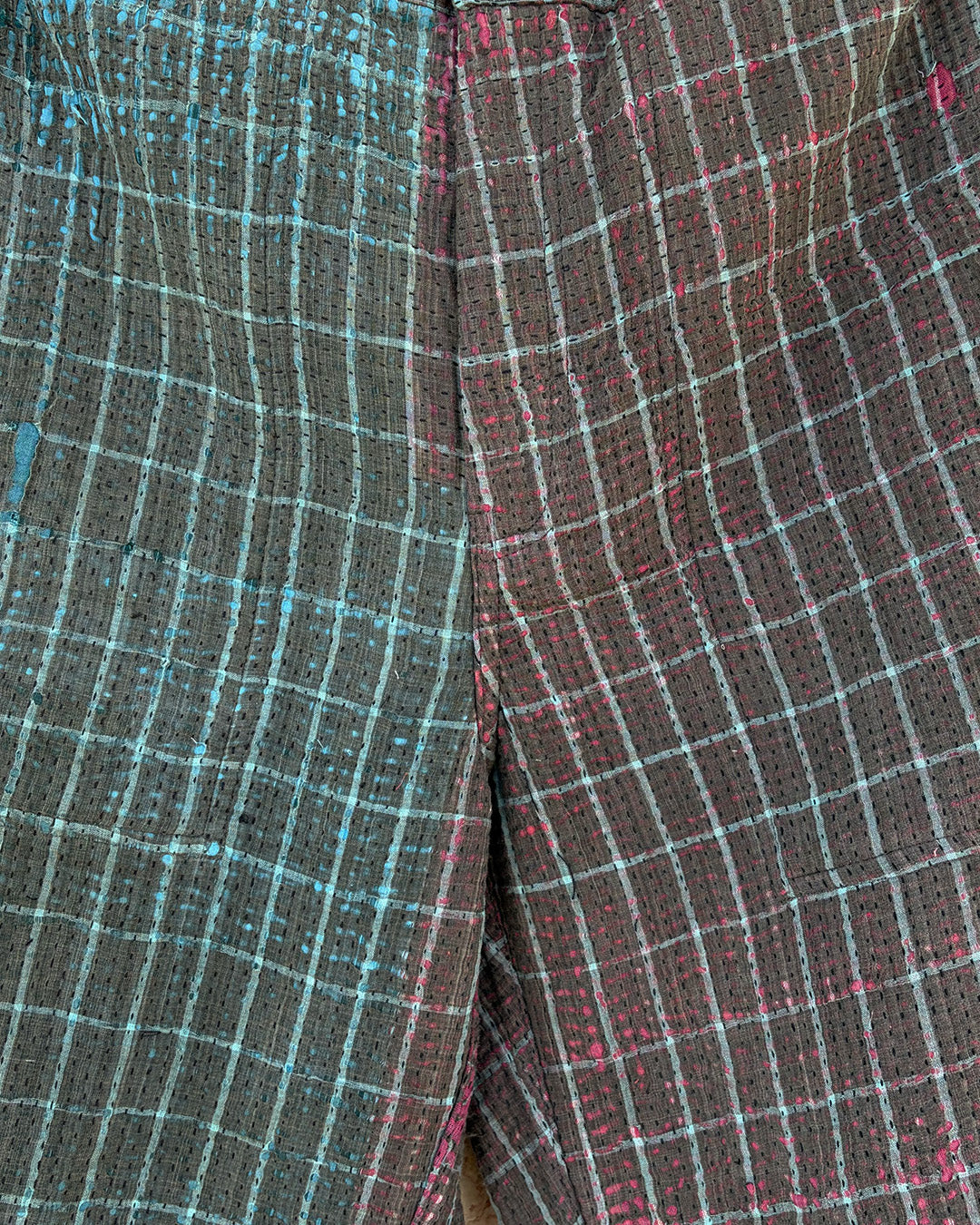 Kantha quilts are crafted from repurposed saris and fabrics and feature repairs, darning, and patchwork. These unique details not only add character but ensure durable, one-of-a-kind garments with a rich up-cycling heritage. We embrace the distressed patches alongside the intricate stitch work in the most unlikely colours.