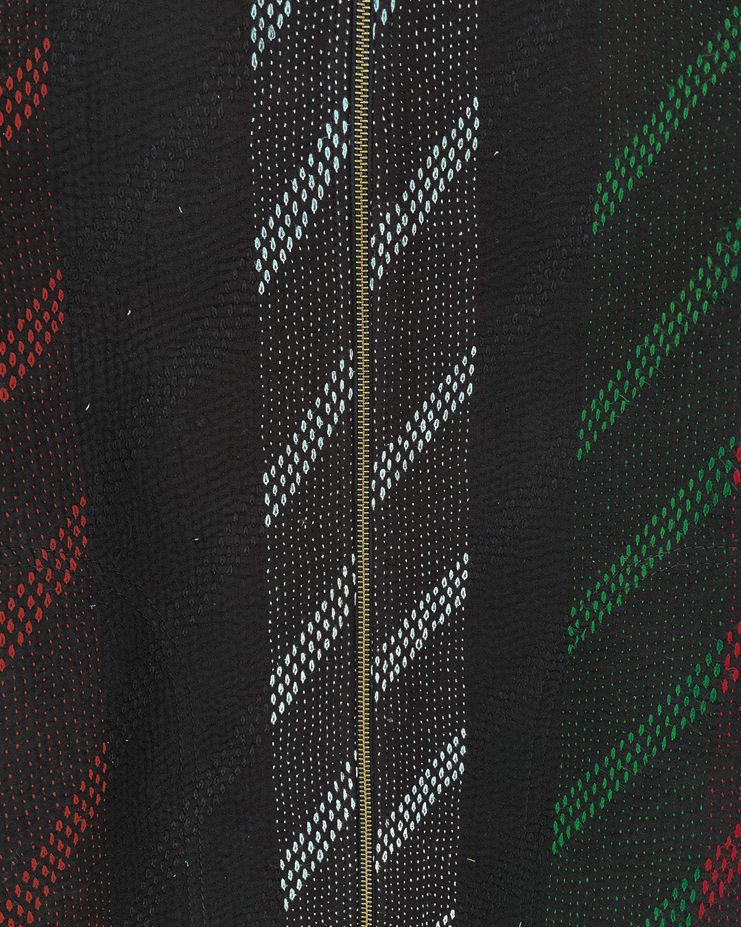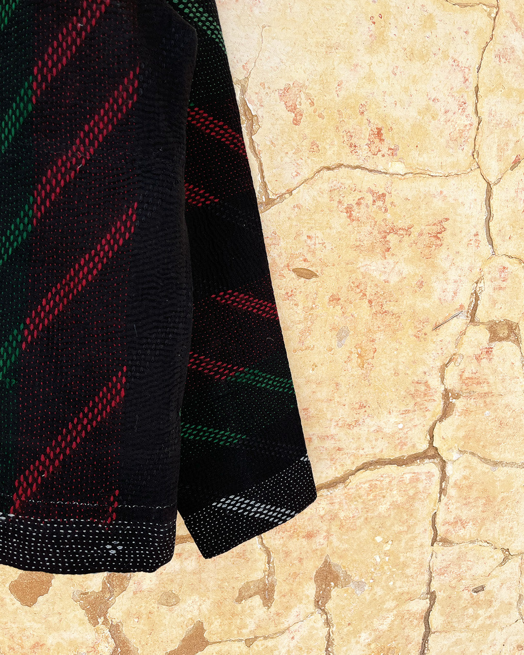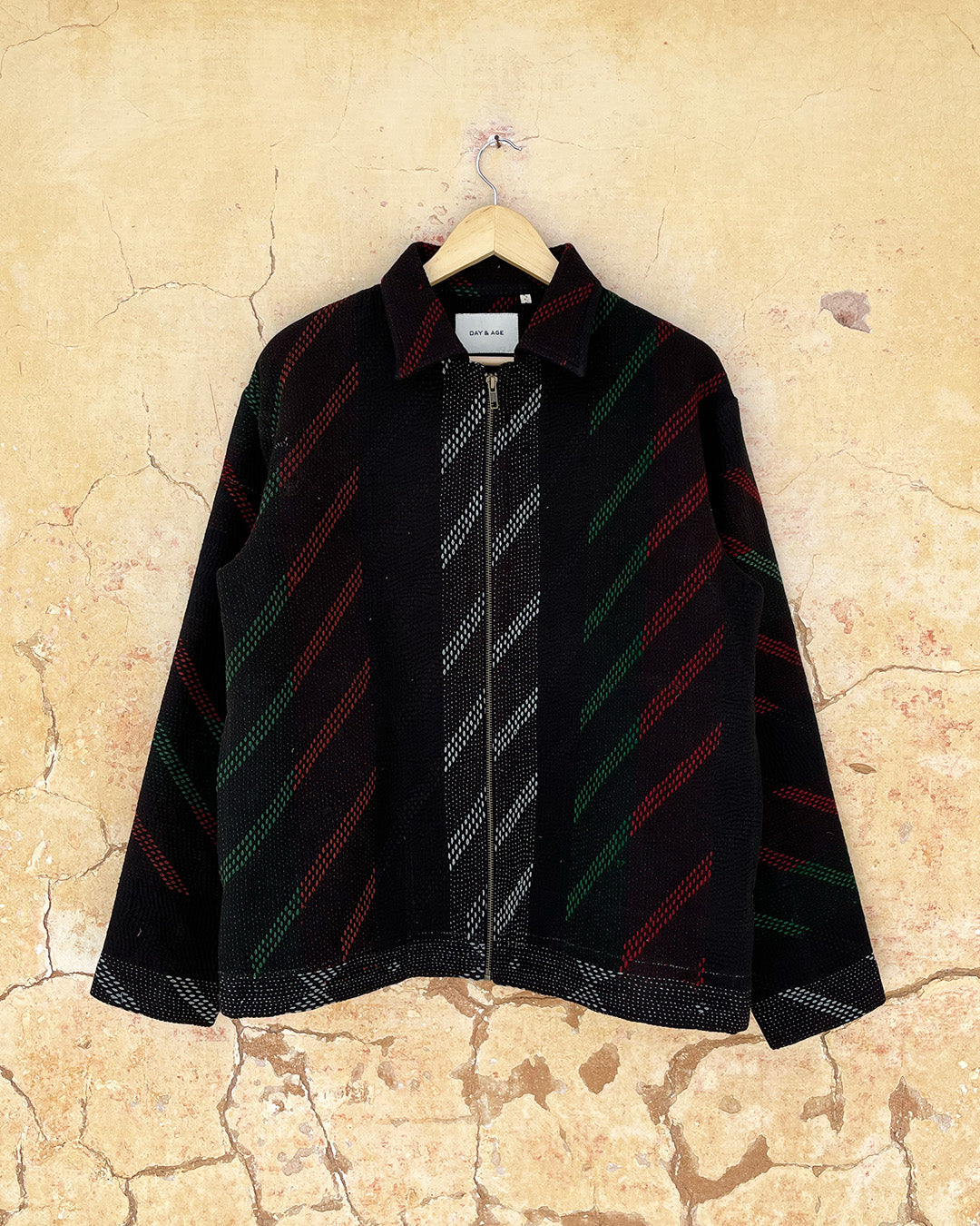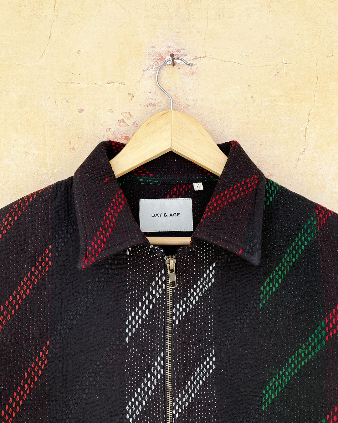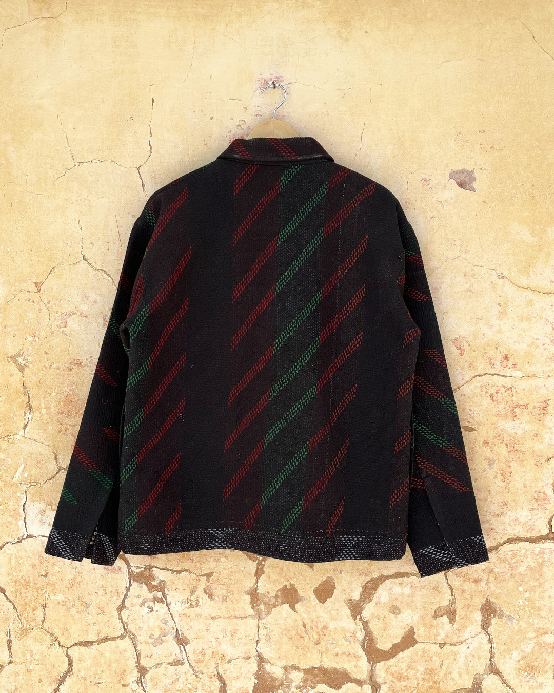 Kantha quilts are crafted from repurposed saris and fabrics and feature repairs, darning, and patchwork. These unique details not only add character but ensure durable, one-of-a-kind garments with a rich up-cycling heritage. We embrace the distressed patches alongside the intricate stitch work in the most unlikely colours.