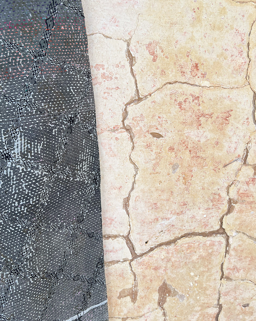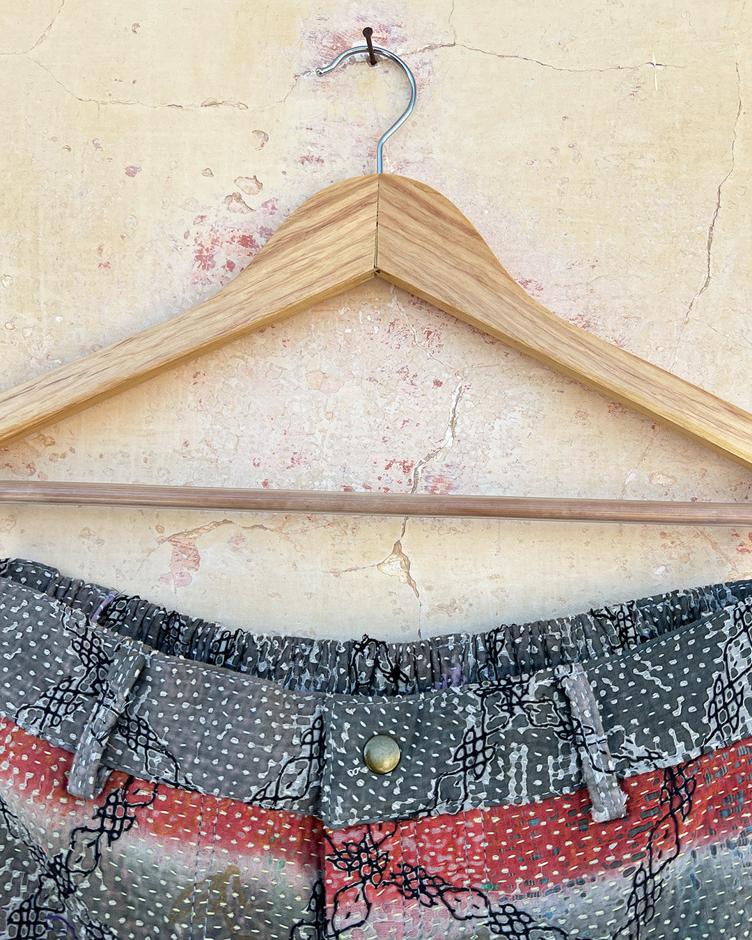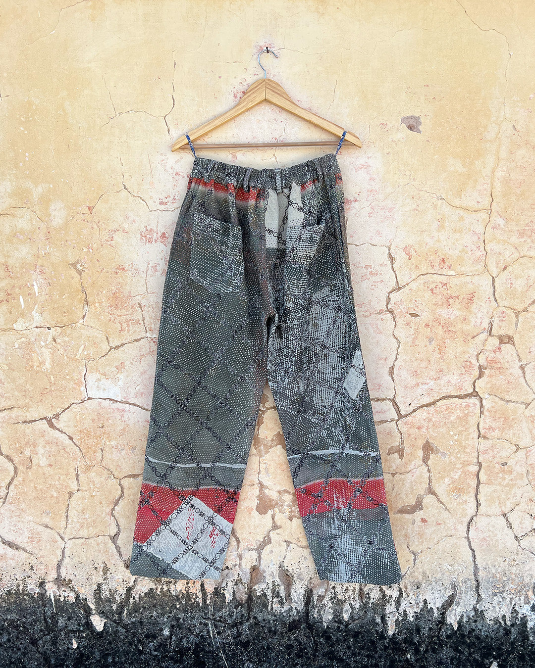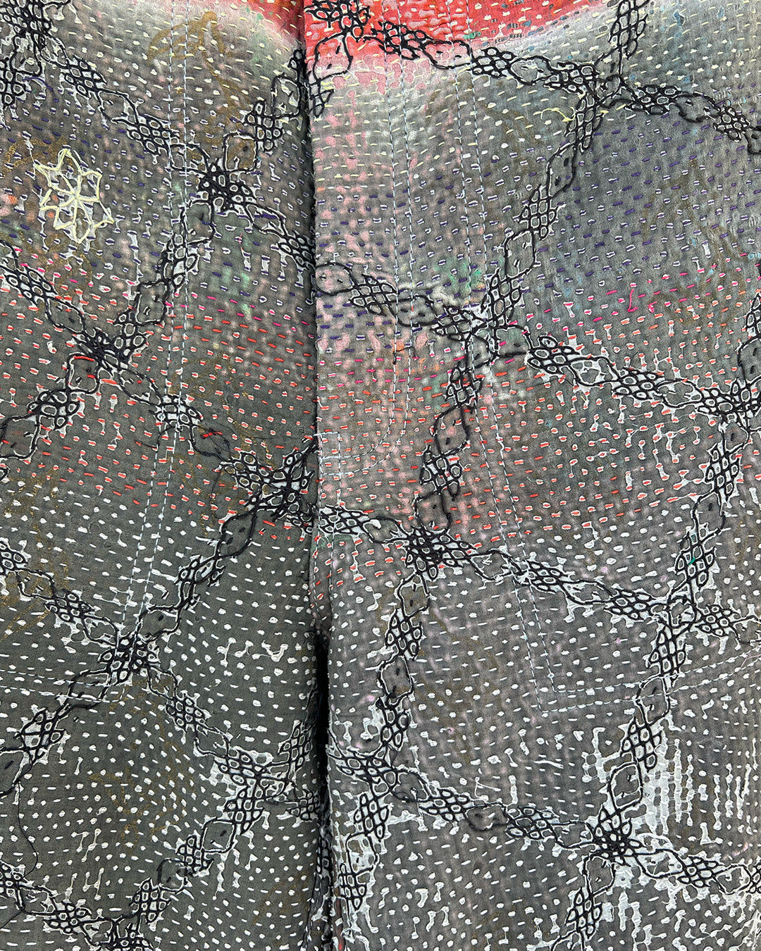 Kantha quilts are crafted from repurposed saris and fabrics and feature repairs, darning, and patchwork. These unique details not only add character but ensure durable, one-of-a-kind garments with a rich up-cycling heritage. We embrace the distressed patches alongside the intricate stitch work in the most unlikely colours.