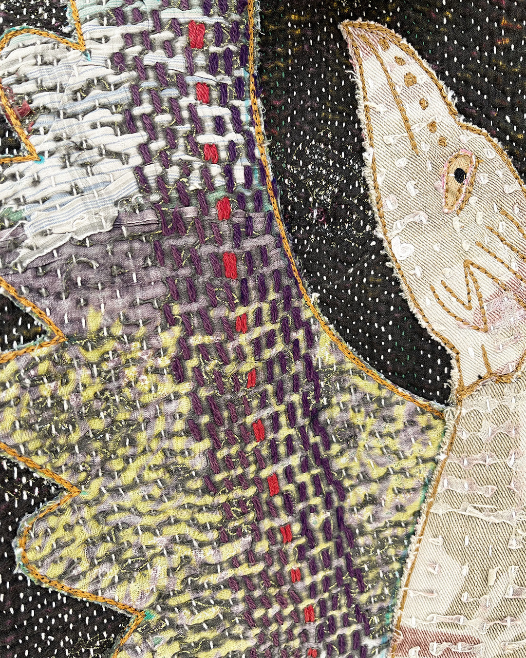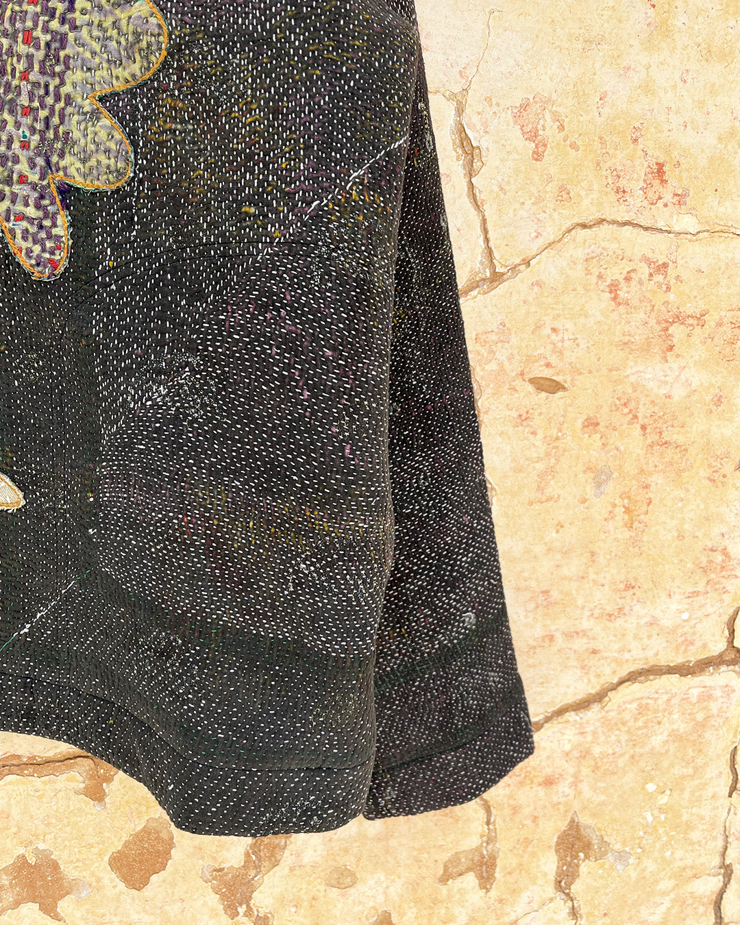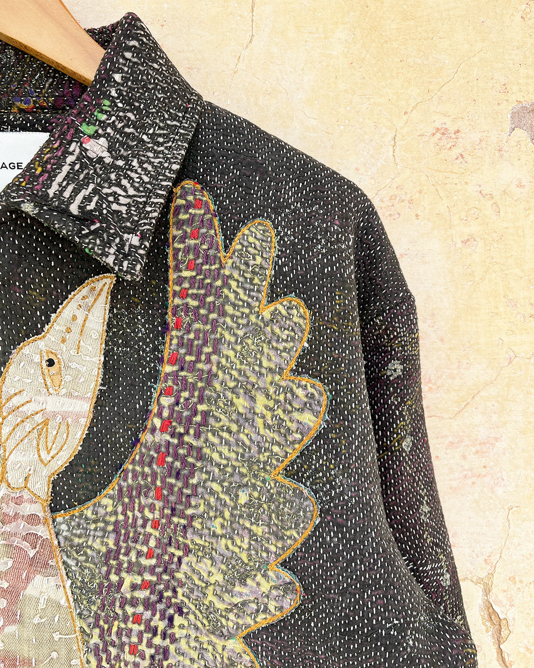 Neither This Nor That is an exploration of identities. It questions the notion of purity through mythical hybrid creatures. Whether it is the yali that it part tiger and part elephant, or the makara, a creature that defies the land and the sea, the forms in this collection lie between worlds. Once seen as grotesque, they now echo something more human than ever — our own plural, ever-shifting selves. Kantha quilts are synonymous with this idea, each one made up of many layers of fabric. Neither This Nor That thrives in this ambiguity: inhabiting the in-between and existing as many things at once.