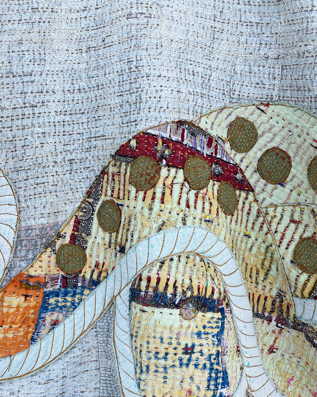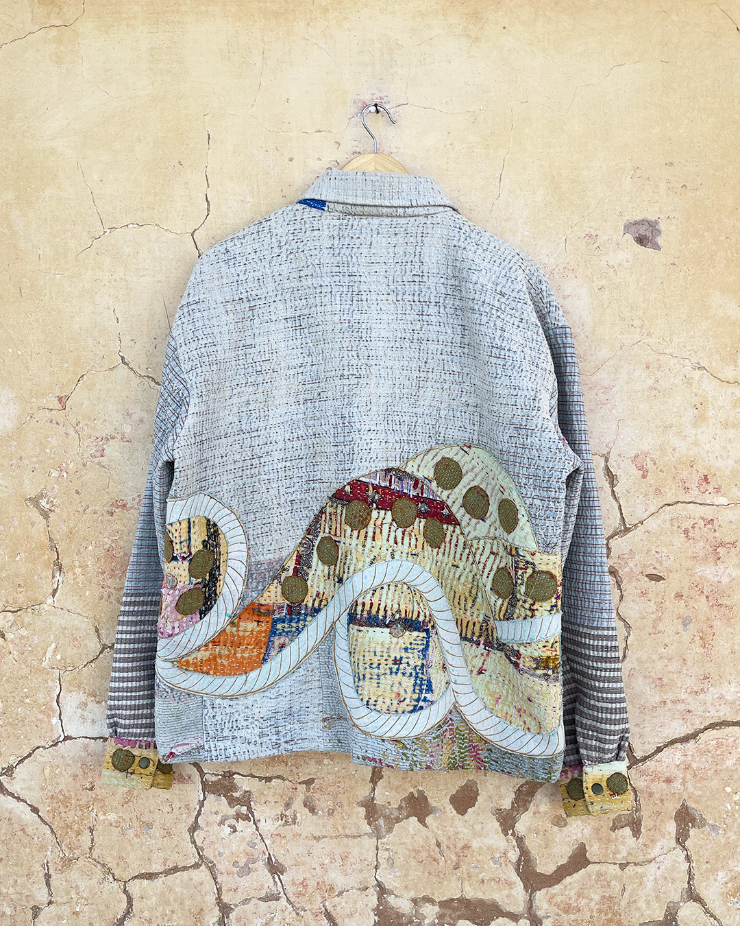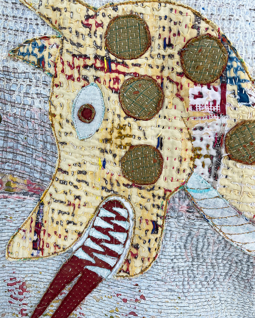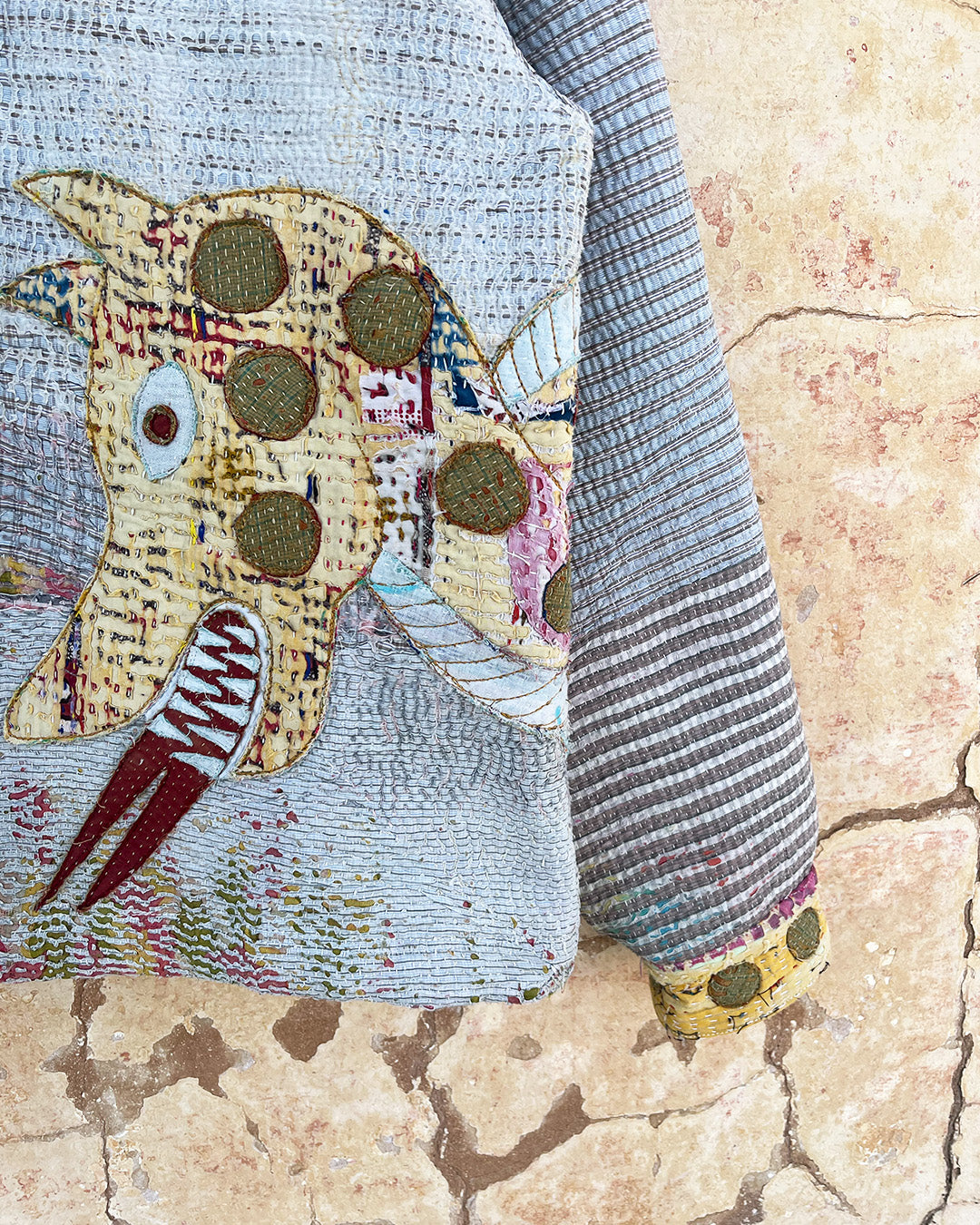 Neither This Nor That is an exploration of identities. It questions the notion of purity through mythical hybrid creatures. Whether it is the yali that it part tiger and part elephant, or the makara, a creature that defies the land and the sea, the forms in this collection lie between worlds. Once seen as grotesque, they now echo something more human than ever — our own plural, ever-shifting selves. Kantha quilts are synonymous with this idea, each one made up of many layers of fabric. Neither This Nor That thrives in this ambiguity: inhabiting the in-between and existing as many things at once.