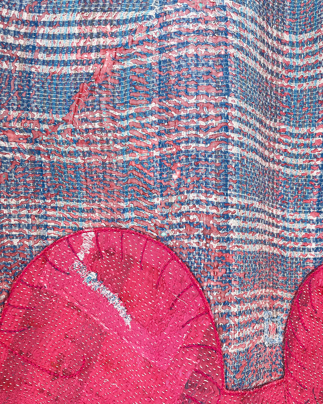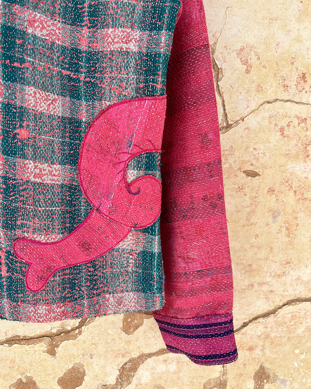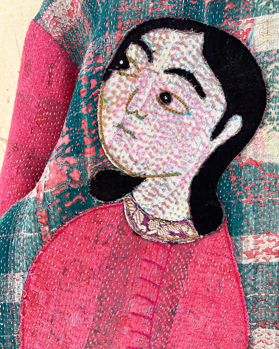 Neither This Nor That is an exploration of identities. It questions the notion of purity through mythical hybrid creatures. Whether it is the yali that it part tiger and part elephant, or the makara, a creature that defies the land and the sea, the forms in this collection lie between worlds. Once seen as grotesque, they now echo something more human than ever — our own plural, ever-shifting selves. Kantha quilts are synonymous with this idea, each one made up of many layers of fabric. Neither This Nor That thrives in this ambiguity: inhabiting the in-between and existing as many things at once.